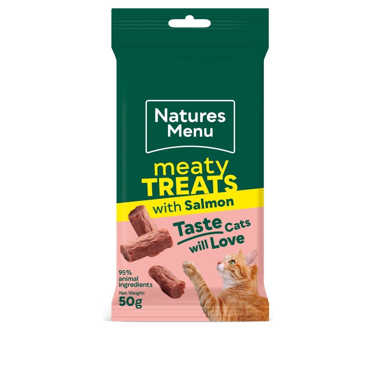 Natures Menu Lohiherkku on pehmeä ja proteiinipitoinen makupala, joka sopii erityisen hyvin myös herkkävatsaisille tai nirsoille kissoille. Herkuissa on runsas määrä lihaa ja lohta, mikä tekee mausta täyteläisen ja tuo mukana hyödyllisiä omega-3-rasvahappoja turkin ja vastustuskyvyn tueksi.