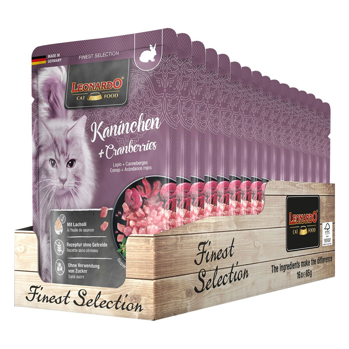 Leonardo Rabbit & Cranberries on viljaton kissan märkäruoka kanista ja karpaloista, joka on kehitetty erityisesti herkille ja nirsoille kissoille. Kani tarjoaa helposti sulavaa ja vähärasvaista proteiinia, kun taas karpalot tukevat immuunipuolustusta ja virtsateiden terveyttä. Tämä resepti on maukas, ravitseva ja luonnollinen vaihtoehto päivittäiseen ruokintaan.