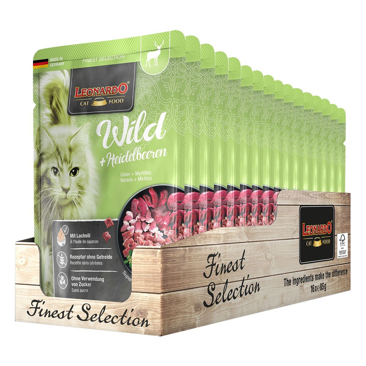 Leonardo riista & mustikka – viljaton kissan märkäruoka riistasta