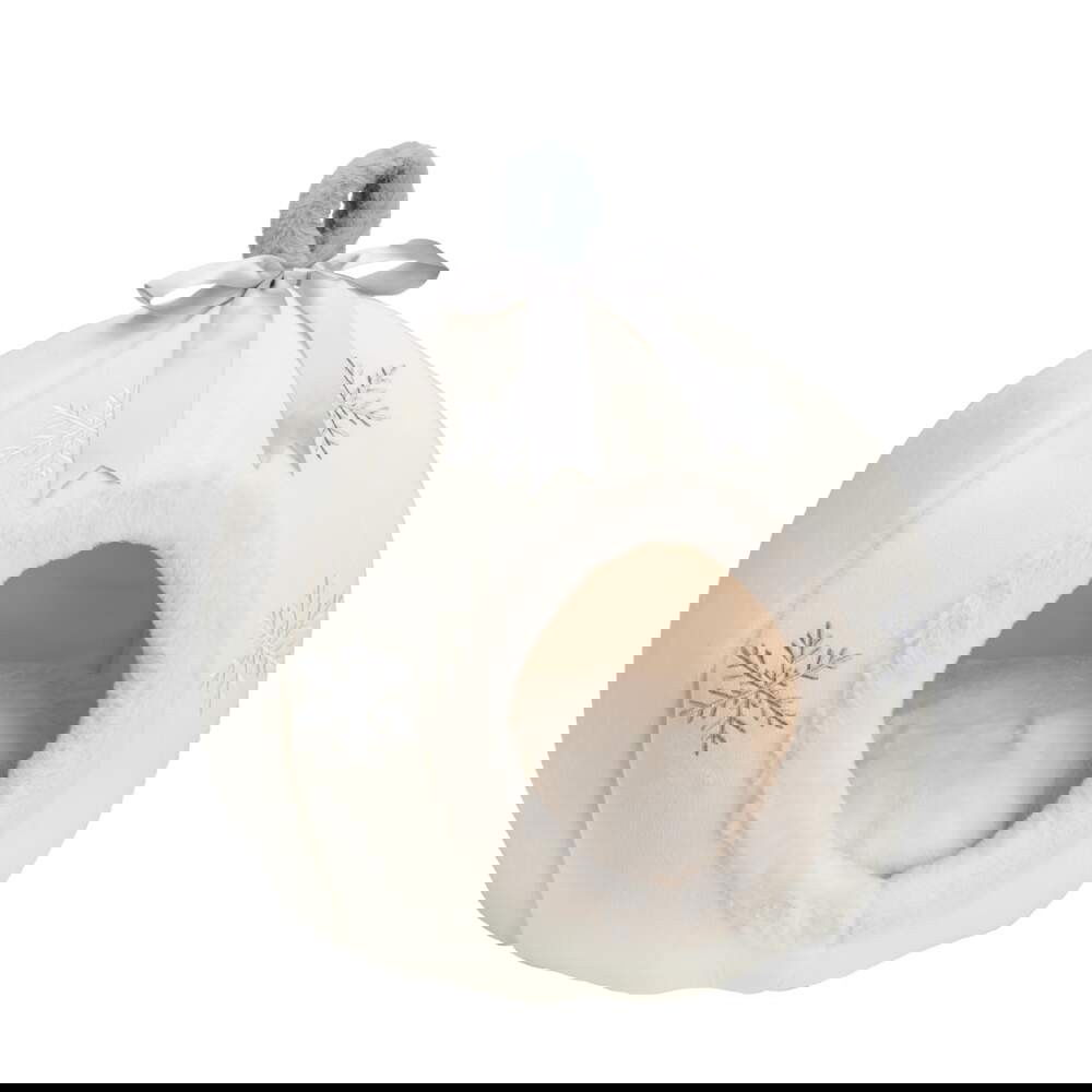 Little&Bigger Seasons Classics joulupalloluolapeti on joulupallon muotoinen pehmeä kissan peti, joka tuo talveen ripauksen juhlatunnelmaa. Valkoinen sileä plyysi on koristeltu neljällä hopeanhohtoisella lumihiutaleella, ja suuaukkoa kehystää ylellinen tekoturkisreunus. Irrotettava tyyny on kaksipuolinen – toinen puoli pörröinen, toinen sileä. Katossa on kaunis satiinirusetti viimeistelynä.