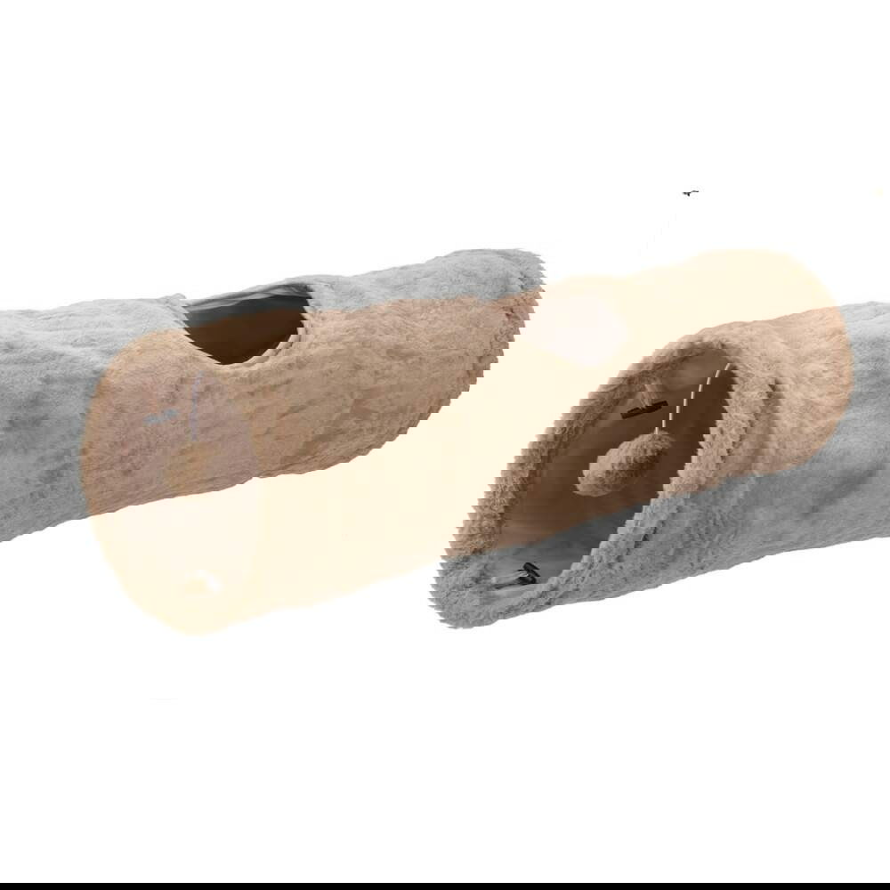 Little&Bigger Cosy-Xmas furry rapinatunneli tarjoaa kissoille hauskaa tekemistä ja piiloutumisen iloa! Tunneli on valmistettu ylellisen pehmeästä vaaleanruskeasta tekoturkiksesta ja sen sisällä oleva rapiseva materiaali houkuttelee kissan tutkimaan ja leikkimään. Tunneli on 90 cm pitkä ja siinä on lisäaukko keskellä sekä roikkuva lelu toisessa päässä, joka innostaa saalistusleikkiin.