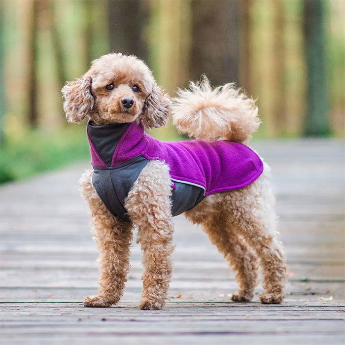 Koiran fleecetakki lämmittää viileällä säällä: hyvä koiran välikausitakki. Pehmeä koiran fleecetakki on kahisematon ja mukava vaatteisiin tottumattomallekin koiralle. Koiran fleecepaita sopii myös sadetakin alle lisälämmikkeeksi. Fleecepaita on istuva ja pysyy hyvin koiran päällä myös reippaammassa menossa. Koiran fleecepaita tai fleecetakki lämmittää kolealla säällä ulkoillessa, harrastuksissa tai autossa joko yksinään tai takin alla lisälämmikkeenä. Koiran fleecepaita pitää harrastuskoiran lihakset lämpimänä ja seniorin olon mukavana viileällä säällä. Katso myös kaikki koiran vaatteet.