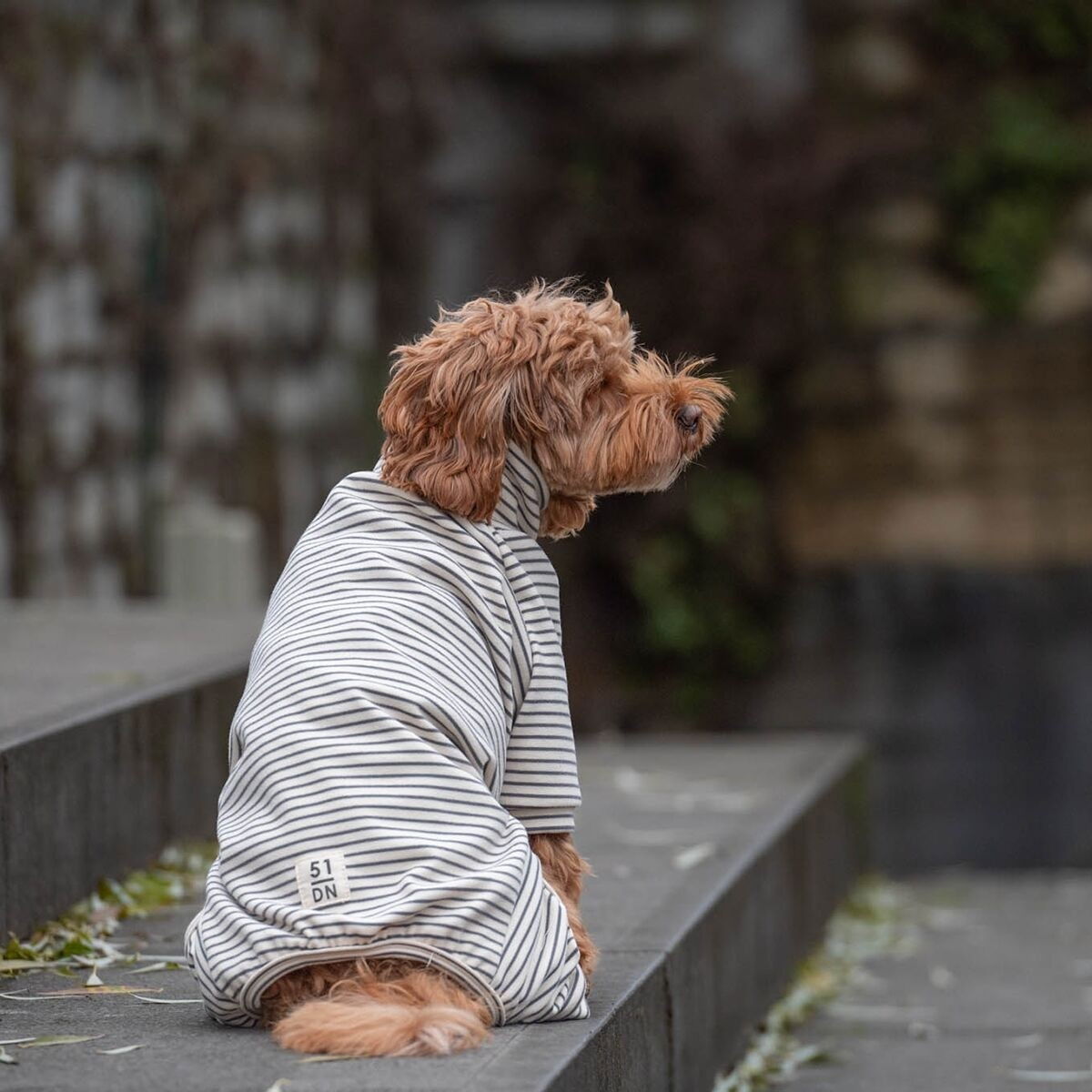 51 Degrees North Sweet Dreams -pehmopuku harmaaraidallisena – Unelmien yöpuku pienille ja keskikokoisille koirille