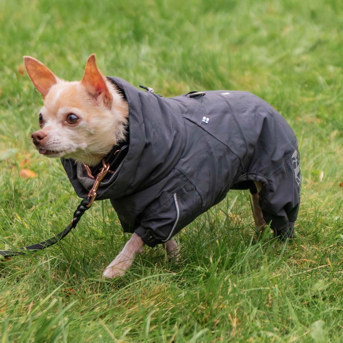 - Tehokkaasti lämmittävä haalari koiralle – suojaa kaikki suuret lihasryhmät ja jalat.