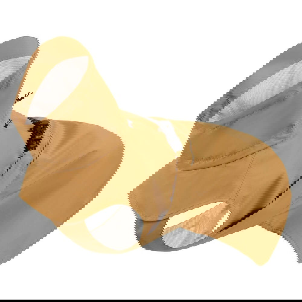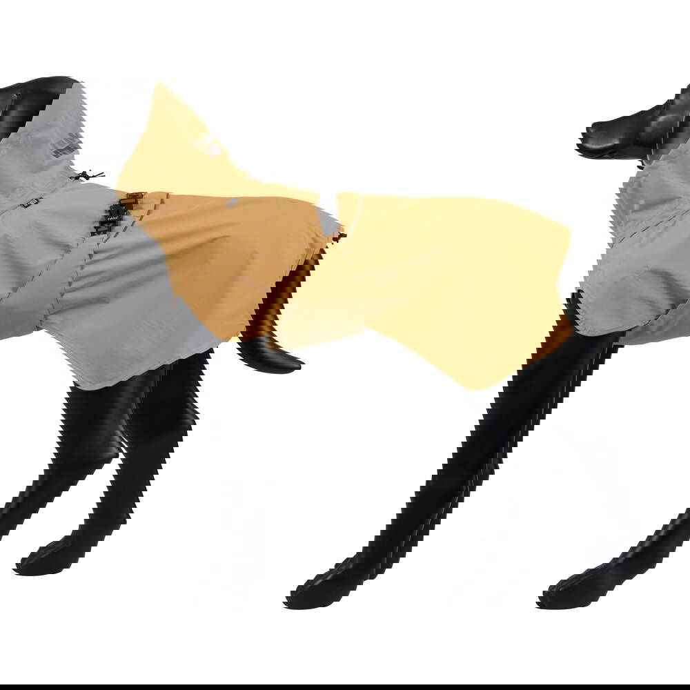 Vuoriton rakenne tekee takista erinomaisen valinnan kerrospukeutumiseen, ja neljään suuntaan joustava ripstop-materiaali mukautuu koiran liikkeisiin luonnollisesti. Kankaan tekniset arvot, 15 000 mm vedenpitävyys ja 15 000 mvp hengittävyys, takaavat huipputason suojan sateelta ilman kondensaatiota.