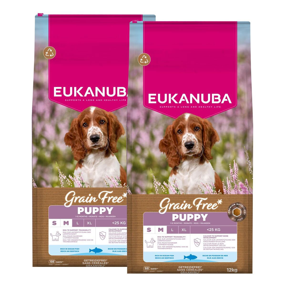 Eukanuba Grain Free Puppy S/M 2 x 12 kg - tuplasäkkitarjous penturuokaa!