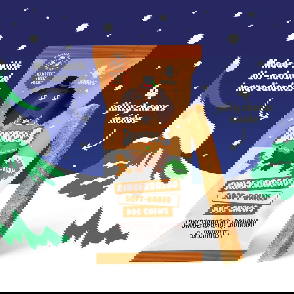 Denzel's Piparkakku -herkkutikut koiralle ovat herkullisia pehmeitä herkkutikkuja, joissa maistuvat piparkakku, banaani ja porkkana. Näissä jouluisissa herkkutikuissa ei ole viljaa eikä lisättyä sokeria – ne sopivat herkillekin koirille ja tarjoavat terveellisen vaihtoehdon joulun herkutteluun.