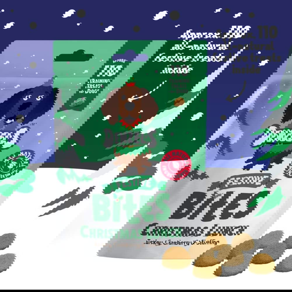 Denzel’s Christmas Lunch Bites ovat pehmeitä, suupalan kokoisia makupaloja, joissa maistuvat kalkkuna ja karpalo. Viljattomat koiran herkut on valmistettu 100 % luonnollisista raaka-aineista ja paahdettu hellävaraisesti Englannissa. Vähäkalorinen koostumus sopii hyvin koulutukseen tai herkkupaloiksi päivittäiseen hemmotteluun.