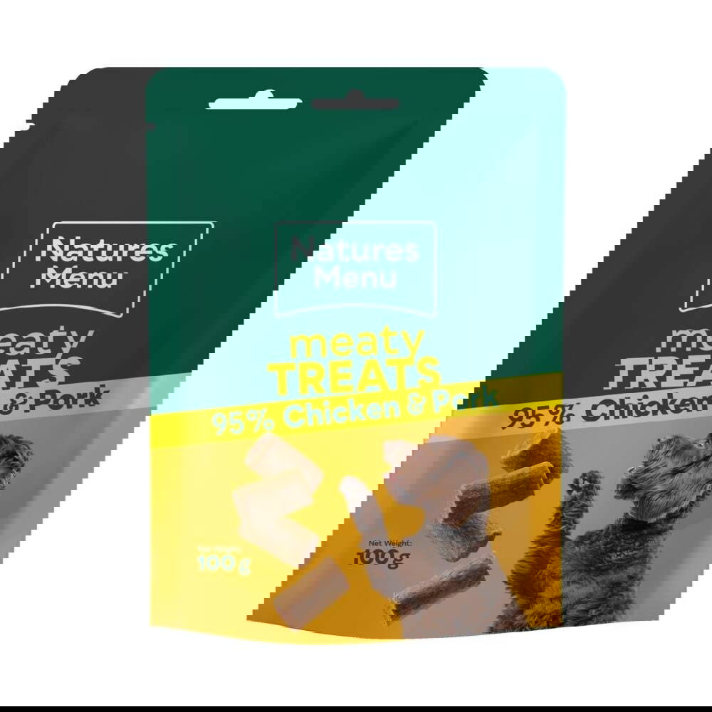 Natures Menu Kana-Possuherkku koiralle yhdistää kanan (50 %) ja possun (45 %). Herkut ovat puolikosteita ja maistuvia, ja ne soveltuvat erinomaisesti koulutukseen. Viljaton ja gluteeniton koostumus sopii herkällekin vatsalle ja herkullinen maku puhuttelee valikoivaakin koiraa. Suositeltu enimmäismäärä on 5 herkkua per 10 kg koiran painoa päivässä.