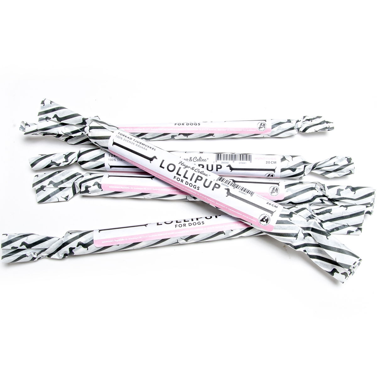 Hugo&Celine Lollipup -koiran herkku on valmistettu 100 % ruotsalaisesta, kuivatusta sonninsudista. Täysin luonnollinen ja lisäaineeton koiran tikkari on herkullinen makupala koiran palkitsemiseen ja hampaidenhoidon tueksi. Pituus 20 cm.