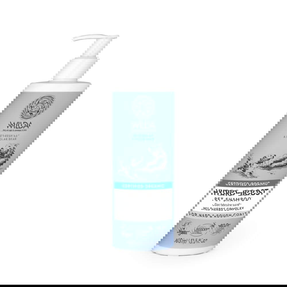 Wilda Hydro-boost on kosteuttava shampoo kuivalle turkille. Sisältää pohjoisessa kasvavaa laminaria-merilevää, joka aktivoi kollageenin tuotantoa. Se sisältää useita aminohappoja, jotka palauttavat turkin kuntoa. Laminaria-merilevän rauta ja kalium kosteuttavat samalla kun jodi ravitsee turkkia ja edistää karvan kasvua. Turkista tulee pehmeä ja silkkinen.