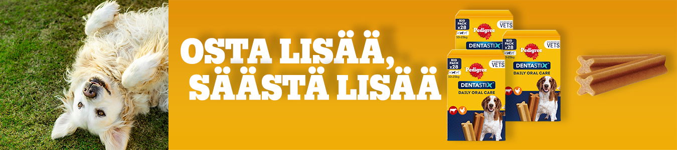 Pedigree Dentastix -valikoimastamme löytyy sopivat puruherkut niin pienille, suurille kuin keskikokoisille koirille isoissa säästöpakkauksissa tai yksittäiskappaleina.