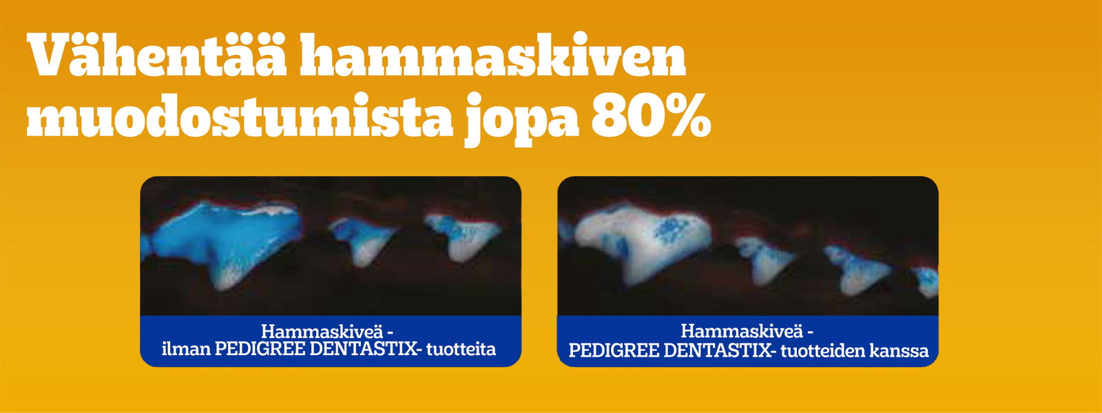 Koiran pahanhajuinen hengitys kertoo koiran hammas- ja ienongelmista. Pedigree Dentastix -koiran purutikut vähentävät tehokkaasti koiran hammaskiven ja plakin syntyä. Pedigree-puruherkkujen erityinen, joustava rakenne taipuu koiran hampaan ympärille ja puhdistaa ne tehokkaasti.