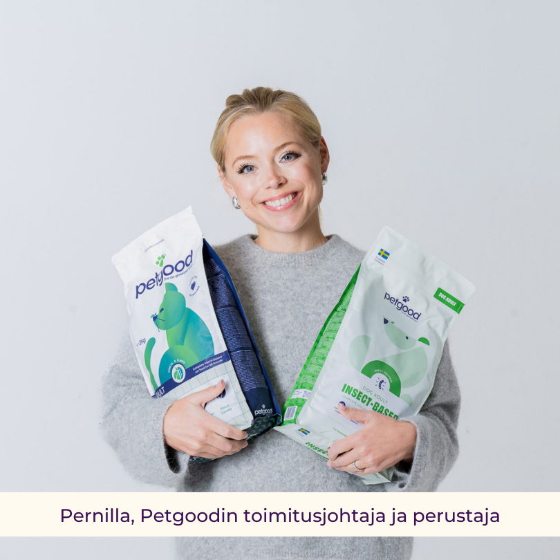 Petgoodin visio on kehittää koirille ja kissoille terveellisiä tuotteita, joissa kestävä kehitys tulee kaupan päälle – siksi valmistajan kaikki innovatiiviset tuotteet perustuvat ravitsevaan hyönteisproteiiniin.