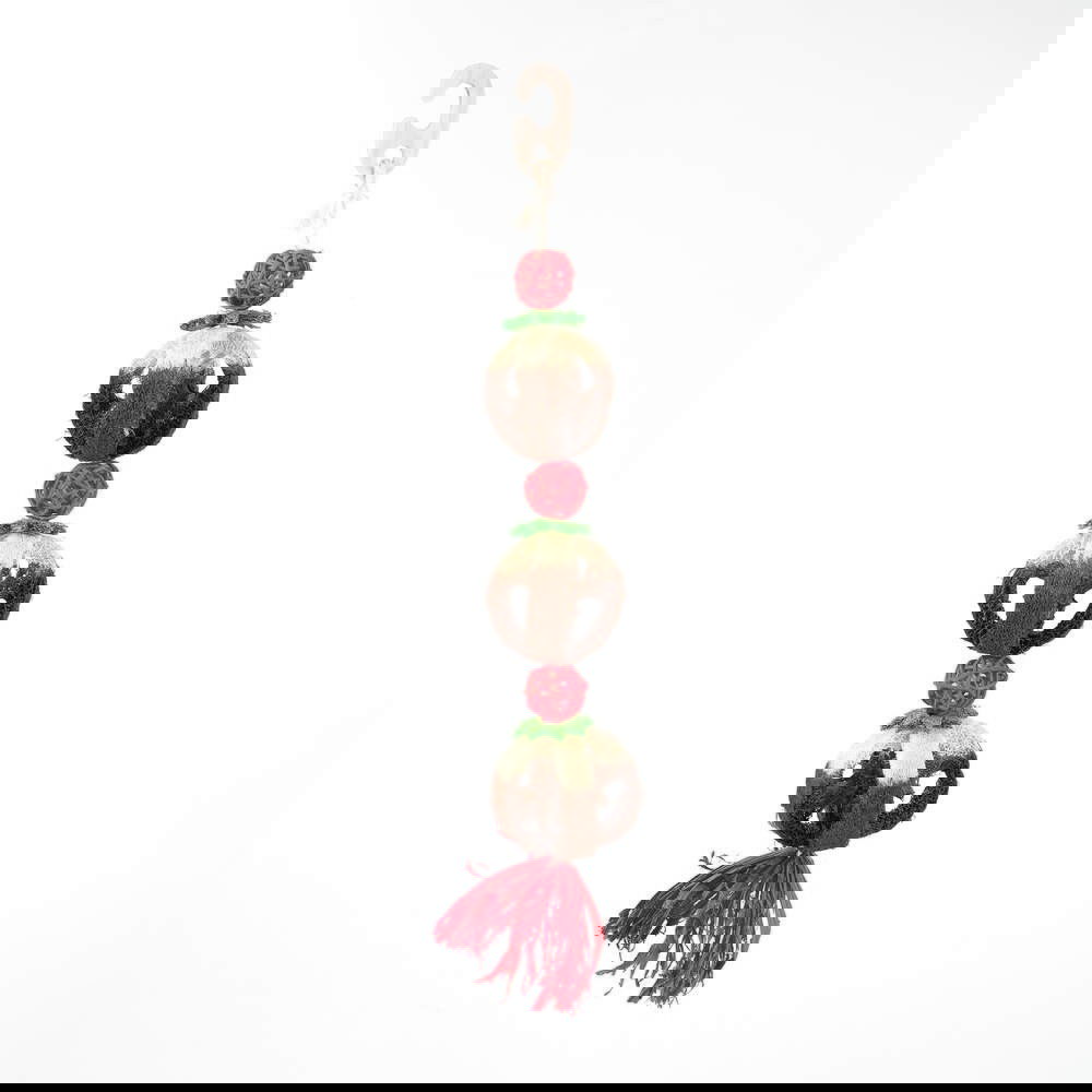 Lelun pituus on noin 54 cm, ja siinä on koukku, josta sen voi helposti ripustaa häkin kattoon tai kylkeen.