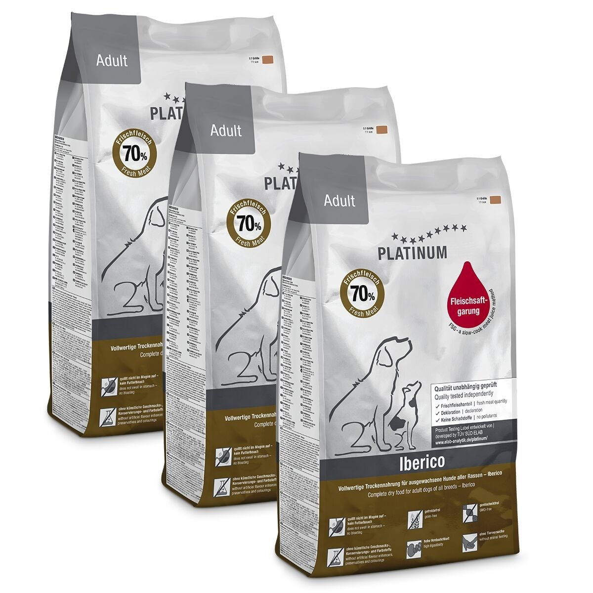 Platinum-tuotteet ovat takuulla lihaisia, ne sisältävät vähintään 70 % laadukasta lihaa. Platinum tarjoaa valikoiman puolikosteita täysravintoja, jotka sopivat loistavasti myös raakaruokaa syöville koirille. Platinum-täysravinnoissa yhdistyy raakaruokinnan korkea lihapitoisuus ja kuivaruoan helppous. Voimakas tuoksu tekee puolikosteasta ruoasta myös oivallisen käytettäväksi herkkuna ja aktivointilelujen täytteenä.