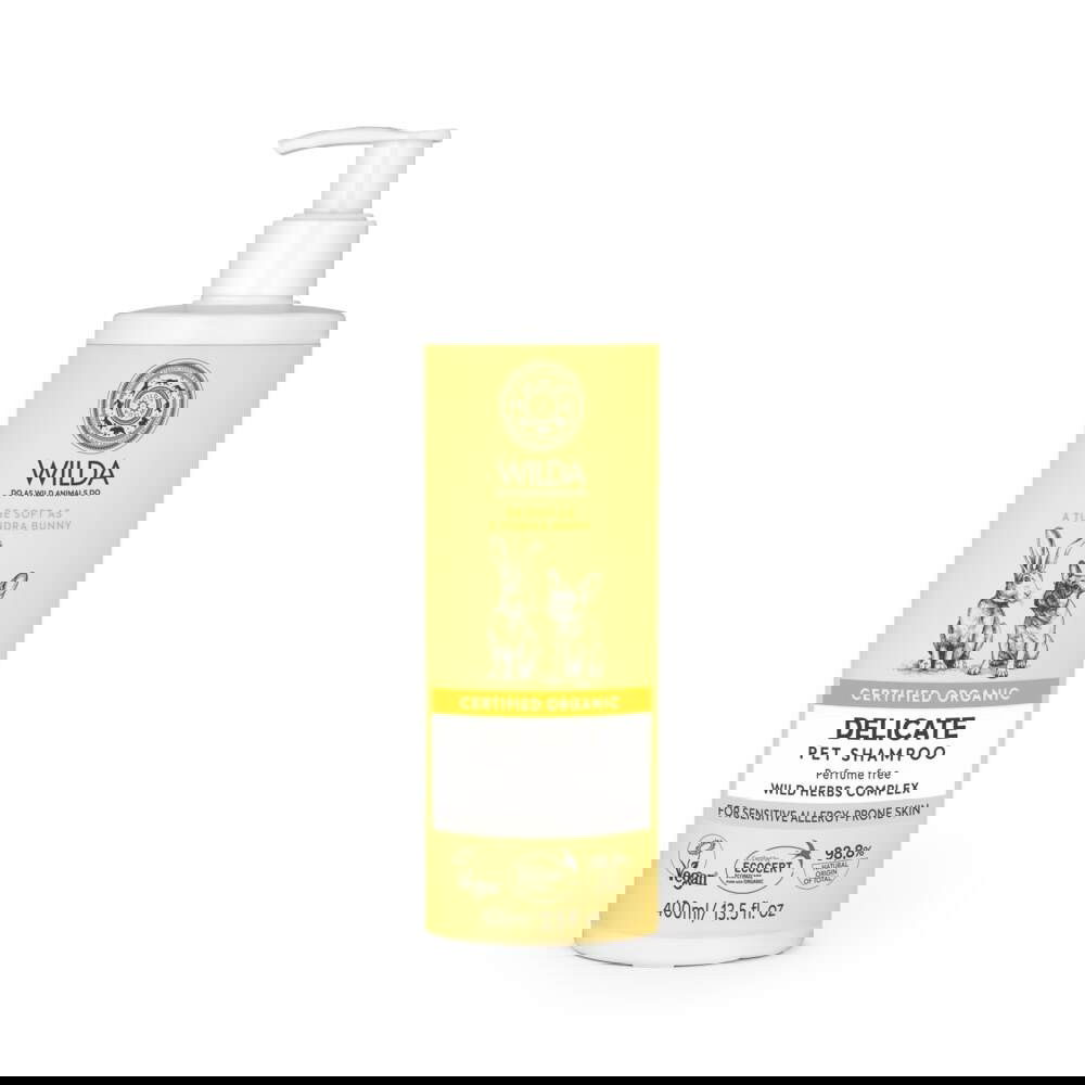 Koiranshampoo Wilda Siberica Delicate on hellävarainen ja sopii pennuille ja herkkäihoiselle aikuiselle koiralle.
